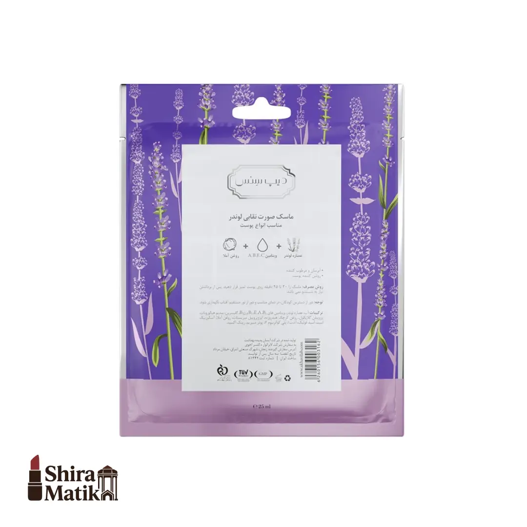 ماسک ورقهای صورت دیپ سنس مدل لوندر 25 میلیلیتر مناسب انواع پوست